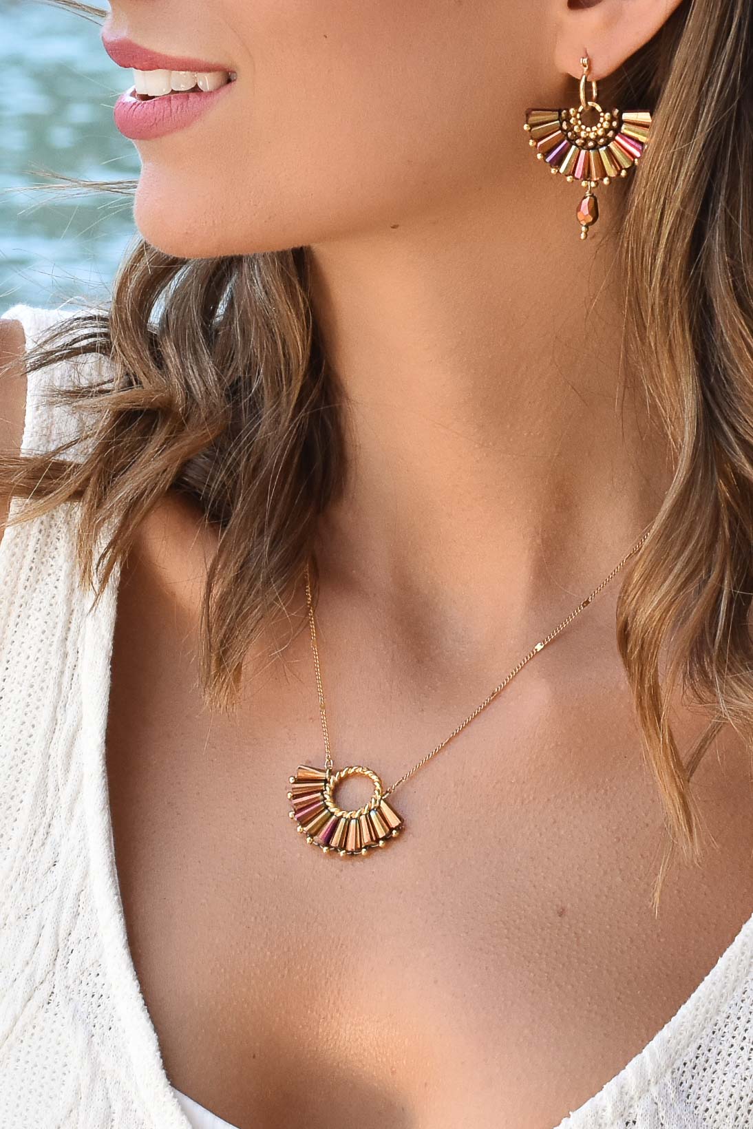 Nous utilisons des matériaux de qualité, tel que le plaqué or 18k, cristaux et des pierres naturelles. Chaque fiche produit indique les matériaux utilisés.